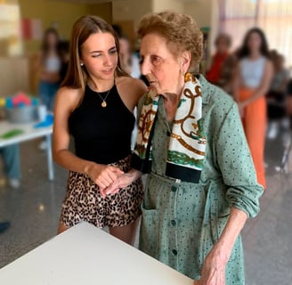 La Maria, una jove estudiant, dedica algunes hores setmanals a fer visites a residències, compartint converses i rialles amb les persones grans. “No només aprenc d’ells, sinó que sento que estic construint vincles genuïns i perdurables.”